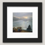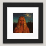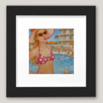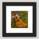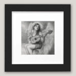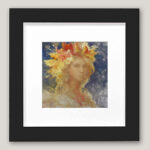 Open edition giclee print framed in a 6×6 in. black wood frame with glass and a mat.